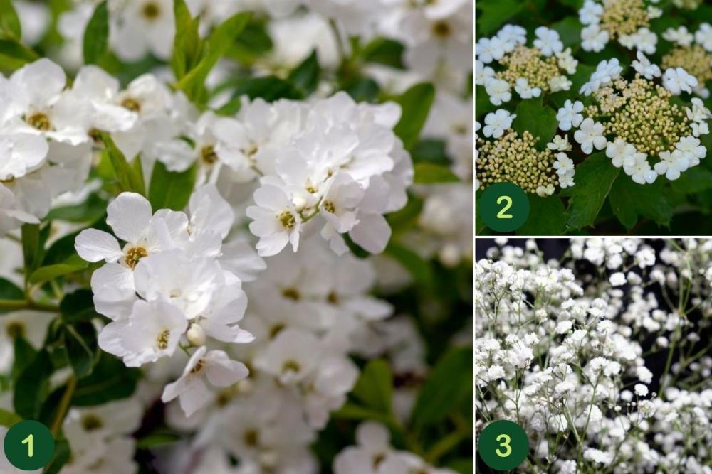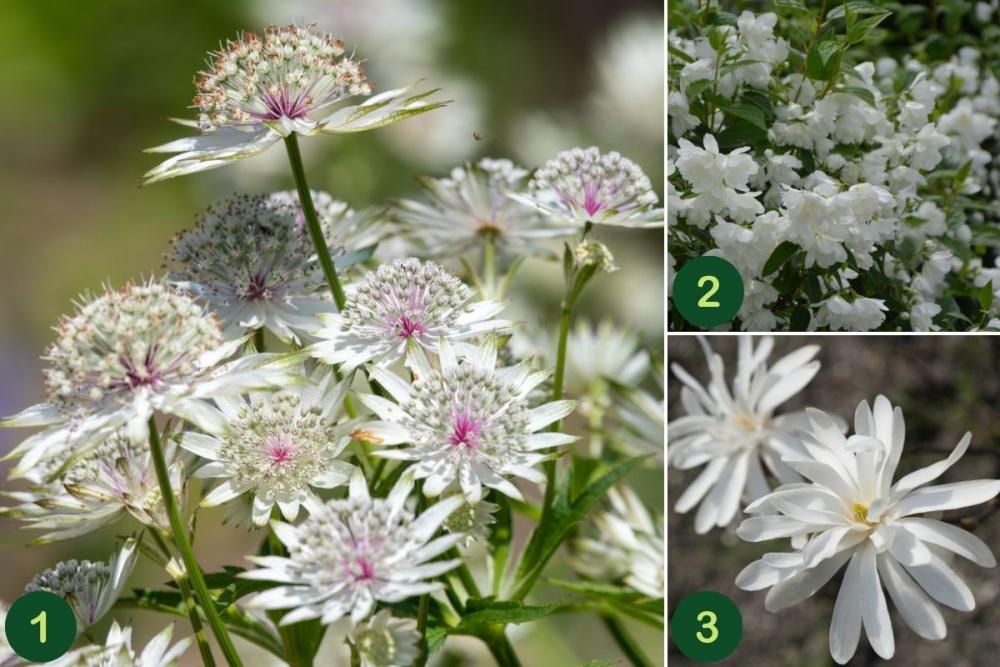 1 Suur tähtputk 'Alba' │2 Ebajasmiin 'Little White Love' │3 Tähtmagnoolia 'Royal Star'